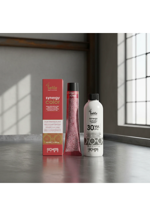 Містить особливий природний Кератин, Арган, лляну олію та протеїни шовку, які покращують зафарбовування сивини, надають реструктуризуючу дію та посилюють блиск крем-фарби Synergy Color.