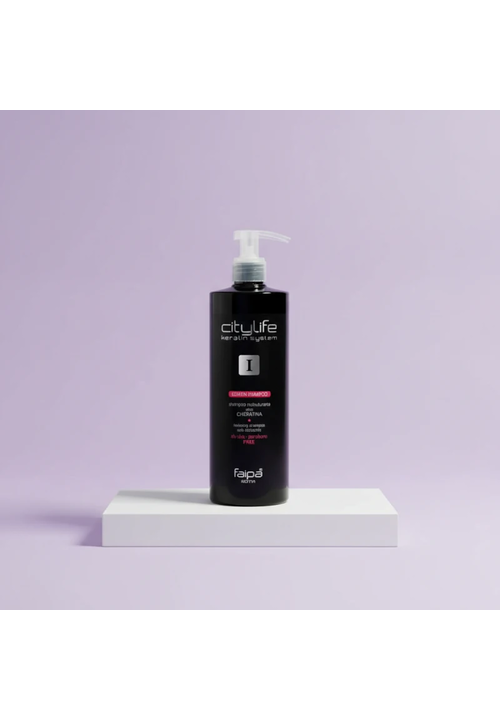 FAIPA CITY LIFE Keratin System Shampoo — відновлюючий шампунь з кератином для щоденного очищення та догляду. М’яко видаляє забруднення й надлишки себуму, підтримує pH 5,0, допомагає зміцнити структуру волосся, надає блиск і полегшує розчісування.