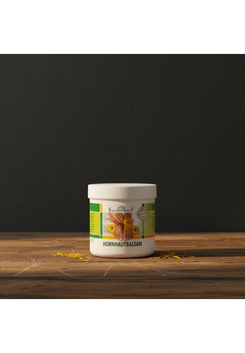 Бальзам Krauterhof діє на мозолисту шкіру м'яко та ефективно, інтенсивно зволожуючи її, регулює процес лущення та зроговіння епідермісу, помітно його зменшуючи.