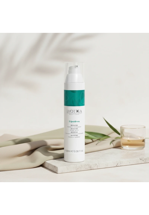 нанести невелику кількість бустера на потрібну область (сідниці, стегна, коліна). Розподілити по шкірі до повного вбирання, потім нанести молочко для тіла.