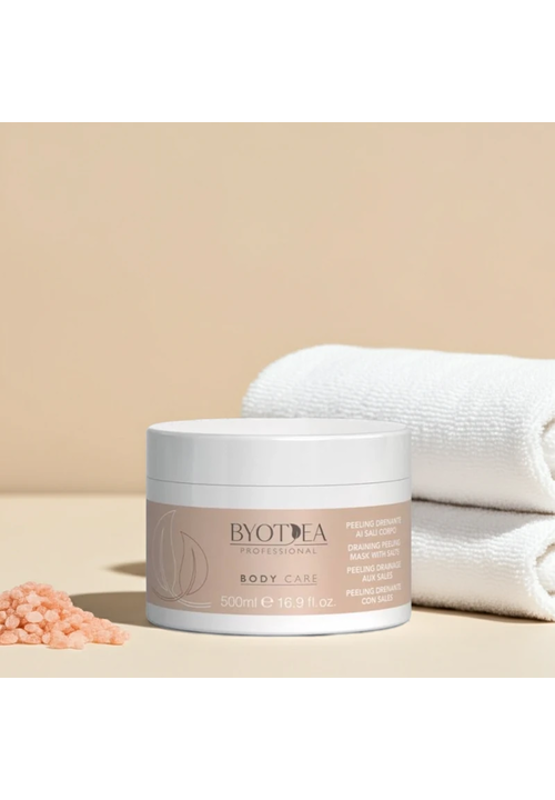 Крем-маска для пілінгу з дренажною дією для виведення зайвої рідини з гімалайською сіллю та оліями мигдалю, кунжуту, оливи.