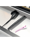 Круглі зубці щітки для фарбування із гребінцем залишають кольоруючу суміш на волоссі під час розчісування та розподілення по довжині, що максимізує її ефект, не пошкоджуючи волосся.