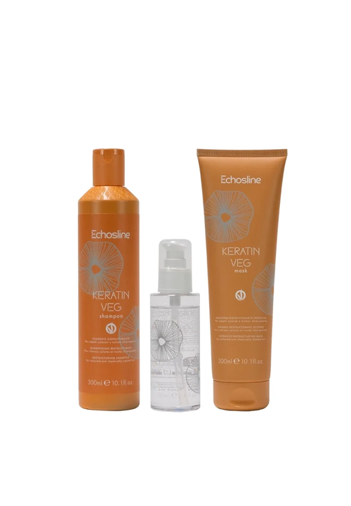 ECHOSLINE Keratin Veg Set Набір для волосся з Кератином (Шампунь 300 мл+Маска 300 мл+Флюїд 100 мл), 3од
