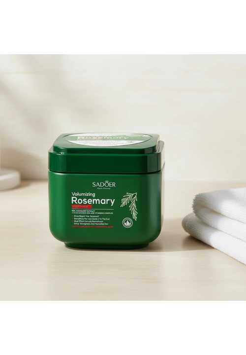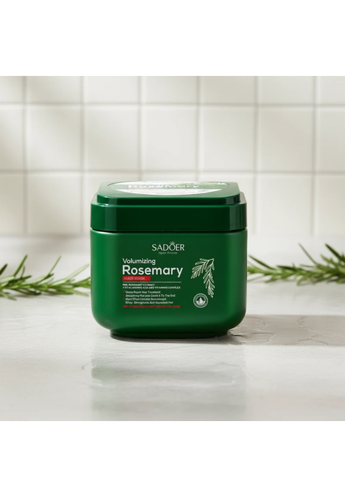Sadoer Rosemary Маска для волосся відновлююча поживна з Розмарином, 500 мл Зволожуюча маска з екстрактом Розмарину, Гіалуроновою кислотою, амінокислотами Шовку і Вітаміном Е спеціально розроблена для інтенсивного догляду за волоссям будь-якого типу, особливо тонкого та пошкодженого. Формула маски спрямована на глибоке живлення та відновлення волосся по всій довжині, включаючи кінчики. Розмарин (98%) зміцнює волосся від коріння до кінчиків, стимулює ріст, укріплює структуру волосся і відновлює пошкоджені ділянки, забезпечує об'єм. Гіалуронова кислота та Вітамін Е інтенсивно зволожують волосся, роблять його м'яким, еластичним і сяючим. Амінокислоти Шовку допомагають позбутися ламкості, розгладжують волосся і зменшує пушіння, забезпечуючи легке розчісування. Регулярне використання маски дозволяє досягти ефекту об'ємного волосся, яке виглядає здоровим і доглянутим. Маска легко наноситься, рівномірно розподіляється та швидко змивається, не залишаючи жирності. Спосіб використання: Нанесіть маску на чисте вологе волосся, рівномірно розподіліть по всій довжині та залиште на 10-15 хвилин. Змийте теплою водою.